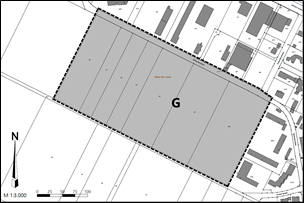 (3) Artenschutz-Maßnahme wird in der Gemarkung Nieder-Ense, Flur 15, Flurstück Nr. 19/3 auf einer Fläche von rund 1,2 Hektar umgesetzt. Für die Ackerfläche wird ein doppelter Drillabstand festgesetzt, der Anbau von Mais wird ausgeschlossen. Am südlichen Randbereich wird ein 13 m breiter dauerhafter Blühstreifen (2.000 m2) als zusätzliches Nahrungshabitat für die Lerche angelegt. Die Lage der Maßnahmen ist dem Übersichtsplan zu entnehmen (ohne Maßstab).