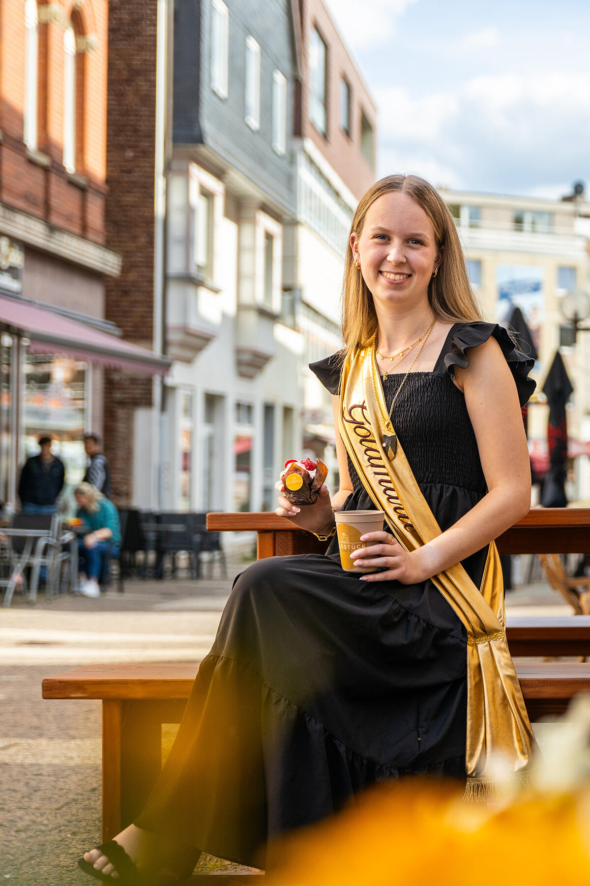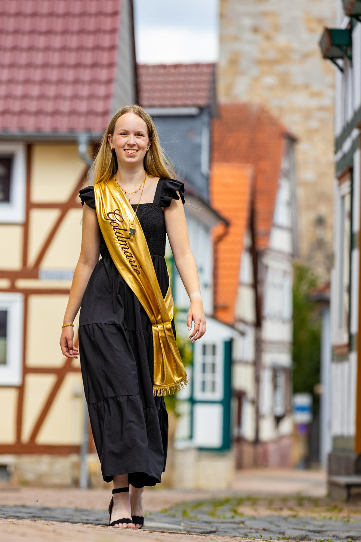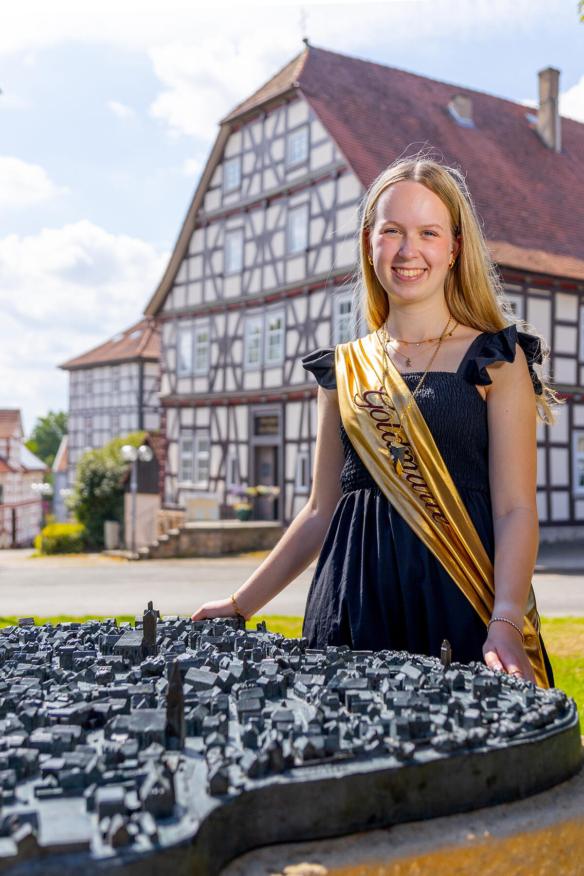 Mein Name ist Emma Kuhlmann und ich habe die Ehre, die 11. Korbacher Goldmarie zu sein – und zugleich die erste, die nicht direkt aus Korbach stammt. Dennoch verbindet mich vieles mit dieser Stadt: Ich arbeite hier, habe viele Freundschaften geknüpft und bin oft in der Innenstadt unterwegs. Umso mehr freue ich mich darauf, Korbach in der kommenden Zeit als Goldmarie vertreten zu dürfen.